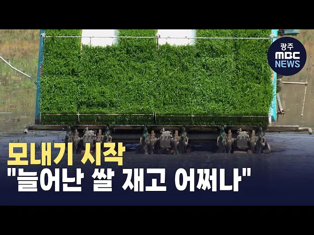 (앵커) 예년보다 따뜻한 날씨에 전국 곳곳에서모내기가 본격적으로 시작됐지만,농민들은 걱정입니다.지난해부터 쌀값이 꾸준히 하락하고 있기 때문인데요. 특히 올해는 미곡처리장마다 벼 재고량도 크게 늘어 쌀값 폭락에 대한 우려가 더욱 커지고 있습니다.MBC충북 전효정 기자의 보도입니다.(기자) 새파랗게 싹을 틔운 모...