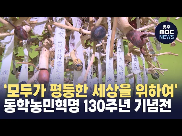 (앵커) 1894년 모두가 평등하다는 대동정신을 실현하고자,농민들은 목숨을 걸고 불합리한 사회에 저항했습니다. 올해 이 동학농민혁명이 130주년을 맞아,그 정신을 기리는 전시가 열렸는데요. 작품마다, 이 시대를 사는 우리에게 던지는 메시지가 있습니다. 김초롱 기자의 보도입니다. (기자)나뭇가지가 복잡하게 얽히고설...