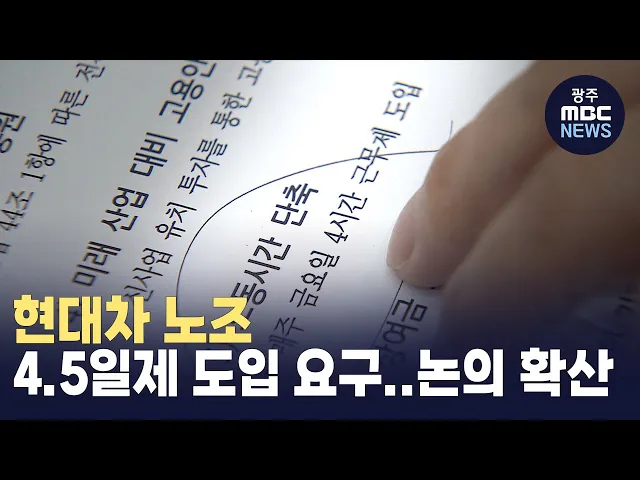 (앵커) 울산에서는 현대자동차 노조가 주4.5일 근무제 도입을 요구하고 나섰습니다.20여년전 주5일제 시행에 현대차가 불을 붙였던 걸 감안하면 앞으로 주4.5일제가 노동계와 경제계의 화두가 될 전망입니다.울산문화방송 홍상순 기자가 보도합니다.(기자)현대자동차 노동조합이 임시대의원대회를 열고 2024년 임단협 요구...