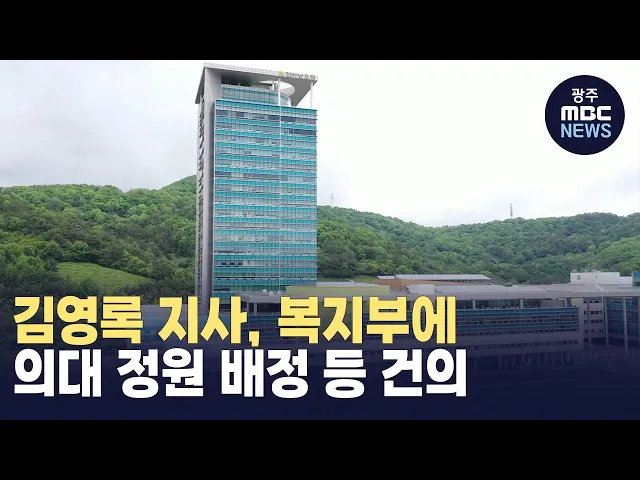 김영록 전남지사는 오늘(9) 보건복지부를 방문해국립의대 정원 배정 등 현안을 건의했습니다.김 지사는 조규홍 보건복지부장관에게 공모를 통한정부 추천대학 선정을 준비하고 있다며 5월 대입전형 시행계획에 2026학년도 전남 의대 신설 정원을 배정해 줄 것을 건의했습니다이에 조 장관은 "의료현안과 제반상항을 고려해 ...