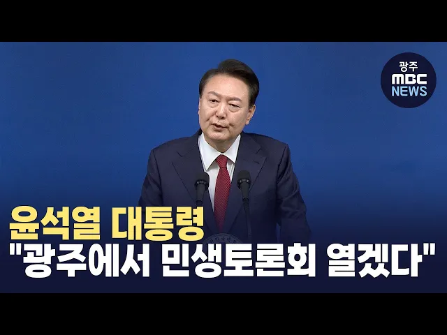 윤석열 대통령이 광주에서도 민생토론회를 열겠다고 밝혔습니다.윤 대통령은 오늘(9일) 기자회견에서광주와 제주, 전북과 경북 등 네 군데를 아직 못갔는데, 민생토론회 계획을 갖고 있다며다음주부터 시작될 것이라고 말했습니다. 윤 대통령은 민생토론회 후속 조치와 추진 상황을 꼼꼼하게 점검하고 있다며 빈말이 되는 ...