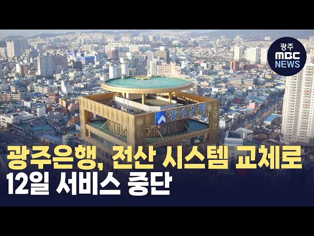 광주은행이 전산 시스템 교체를 위해오는 12일 새벽부터 12시간동안금융 서비스를 일시 중단합니다.광주은행에 따르면 고객에게 보다 안전하고 편리한 금융서비스를제공하기 위한 전산시스템 교체 때문에오는 12일 새벽 2시부터 오후 2시까지12시간 동안 금융 서비스가 중단됩니다.이 시간 동안에는 자동화 기기를 이용한 ...