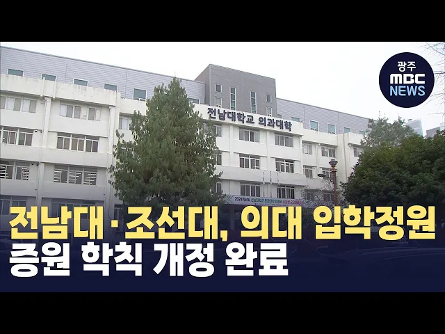 의대정원 학칙개정을 놓고 다른 지역 의대들이 진통을 겪고 있는 가운데광주 지역 의과대학들은 정부에서 분배한의대 증원 인원을 확정하기 위한 학칙을 이미 개정한 것으로 나타났습니다. 전남대와 조선대는 지난달 학칙을 개정해 의과대학 입학 정원을 각각 75명과 25명 늘린 200명과 150명으로 확정했다고 밝혔습니다. ...