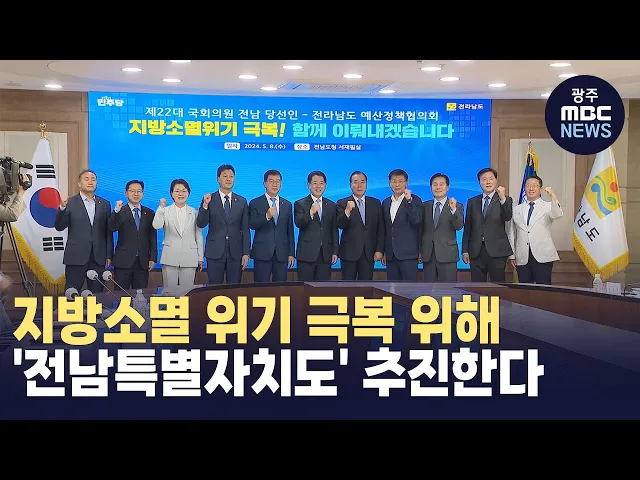 (앵커) 전라남도가 22대 국회의원 전남 당선인들과 첫 예산정책협의회를 가졌습니다.전라남도는 지방소멸 위기 극복을 위해 전남특별자치도 설치가 필요하다며특별법 제정에 당선인들의 협조를 부탁했습니다김양훈 기자가 보도합니다.(기자) 전남 인구는 올해 3월 말 기준,인구 180만명이 붕괴됐습니다.전국 최다 인구감소...