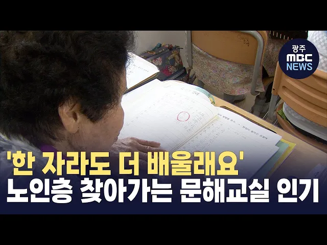 (앵커) 그 옛날 먹고살기 어렵던 시절, 학교에 가고 싶어도 가지 못하는 이들이 많았습니다. 이 때문에 한글을 읽고 쓰지 못하는노인층을 위한 수업이 마련됐는데요. 어르신들은 한 자라도 더 배우겠다며, 젊은층 못지않은 열정을 보이고 있습니다. 김초롱 기자의 보도입니다. (기자)화순 동면의 한 마을회관입니다. 마을 ...