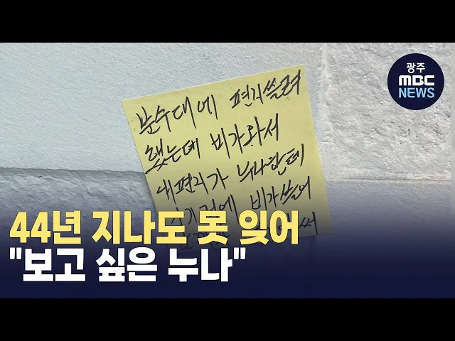 (앵커) 5.18 당시 숨진 누나를 그리워하는 글이 최근 광주의 한 지하철 역에 붙었습니다. 5.18 민주화운동이 일어난 지 40년이 넘었지만, 유족들의 가슴에 새겨진 한은어쩌면 더 커졌는지도 모르겠습니다.천홍희 기자입니다. (기자)5.18민주화운동 당시 마지막 전투가 벌어졌던 옛 전남도청입니다. 이곳에 있는 문화전당역 ...