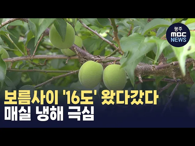 (앵커) 올해 오락가락한 날씨 때문에 여기저기서 농작물 피해가 큰데요. 매실 주산지인 광양에서도냉해 피해로 농민들이 냉가슴을 앓고 있습니다.지난 2월 최저기온이 보름 사이영하 5도와 10도를 넘나드는 변덕스러운 기온 때문에열매가 제대로 맺히지 않았습니다.김단비 기자입니다.(기자) 전남 광양 다압면의 한 매실농...