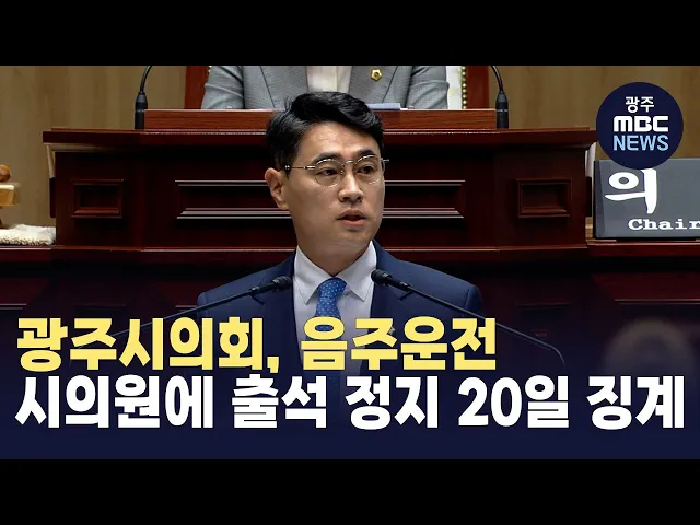 광주시의회 윤리특별위원회가 음주운전을 한 무소속 심창욱 광주시의원에 대해 출석정지 20일 징계를 의결했습니다.앞서 심 의원은 지난 2월 9일 광주의 한 도로에서 음주운전을 했다가 경찰 단속에 적발됐으며 당시 혈중알코올농도는 면허 정지에 해당하는 수치로 알려졌습니다.심 의원에 대한 징계 의결은 오는 13일열리...