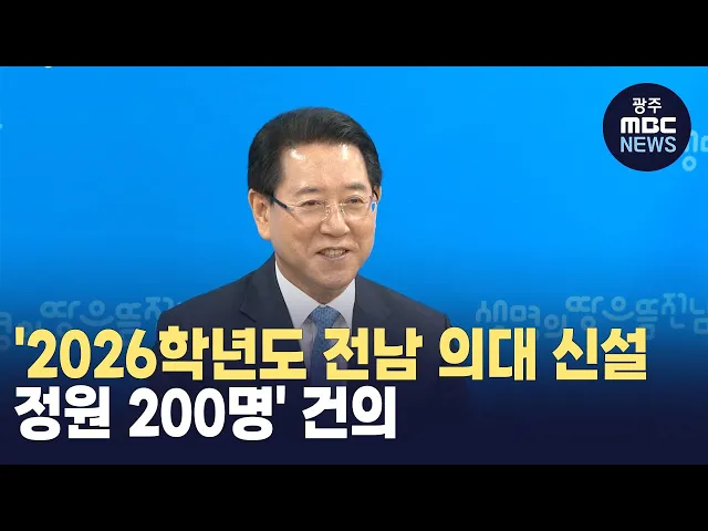 전라남도가 전남 국립 의과대학 신설 정원 200명 배정을 정부에 공식 건의했습니다.전라남도는 '2026학년도 전남 국립 의대 신설 정원 200명 배정'을 골자로 한 대정부 건의문을 대통령실과 보건복지부, 교육부에 공문을 통해 정식 건의했으며 특히 전남도에서 지역 의견 수렴을 통해 대학을 추천해 줄 것을 공개적으로 요...