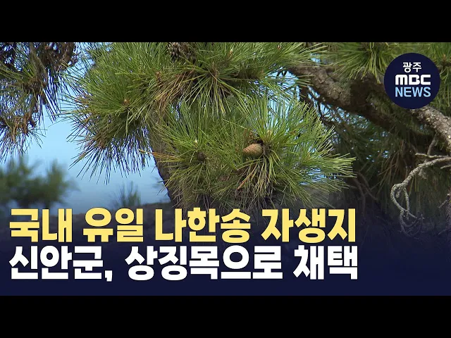 (앵커) 신안군이 신안군을 상징하는 수목을'소나무'에서 '나한송'으로 변경하는 조례안을 통과시켰습니다.국내에서는 나한송 자생지가 신안군 가거도가 유일한 것으로 알려지고 있습니다.김 윤 기자가 보도합니다.(기자)아름드리 나무가 길 옆으로 길에 나란히 뻗어 있습니다.신안군의 미세먼지 차단 숲으로 잎 끝이 동그랗...