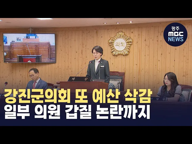 (앵커) 강진군의회가 상반기에 이어또다시 의회사무과 예산을대폭 삭감했습니다. 김보미 의장을 견제하기 위한의원들의 '저격 삭감' 논란이 또다시 불거진 가운데, 일부 의원들의 갑질까지 문제가 되고 있습니다.박종호 기잡니다. (기자)강진군의회 1년 평균 예산은 10억 원.강진군의회는 2024년도 본예산 심사에서의회사무...