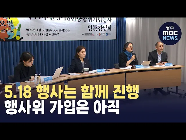 제44주년 5.18 민중항쟁기념행사위가올해 행사는 5.18 공법 3단체와함께 진행하기로 했다고 밝혔습니다.5.18행사위는 기자회견을 열고지난해 특전자동지회와화해 선언을 해 갈등을 빚어온 공법 3단체와기념행사 방향성을 논의하고갈등을 해소하는 간담회가 마련돼 있다며하나의 오월이 될 수 있도록갈등을 봉합해 나가겠다...