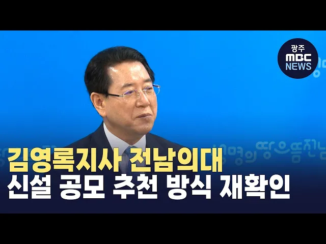 김영록 전남지사가전남 의과대학 신설 문제에 대해'공모를 통한 추천' 방침을 재확인했습니다.김 지사는오늘 기자간담회를 통해 "공모 반대 의견도있고, 전략적 판단을 요구하는 의견도 있지만도지사가 전략적 판단을 하면 도민들이신뢰하기 어려워 공모를 통해 의대신설 대학을추천할 수 밖에 없다"고 말했습니다.또 "무한...