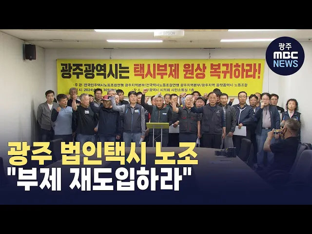 광주 법인택시 기사들이택시 부제 재도입을 촉구했습니다.지역 법인택시 노동조합 3개 단체는오늘(30) 기자회견을 열고"법인택시 운전자들의 과로 방지와안정적인 수입 보장, 차량 정밀정비 등을 위해휴무일을 지정해 쉬는 '택시부제'를 원상복귀 해야한다"고 강조했습니다.이들은 지난 2022년 국토부 훈령에 따라 부제가 ...