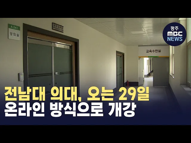 전남대학교 의대가 오는 29일부터비대면 방식의 온라인 강의로 개강합니다.전남대학교는 학사일정을 더이상 늦출 수 없다는 판단에 따라 이번 학기 의대 수업을 오는 29일부터 온라인 강의 방식으로 시작한다고 밝혔습니다.전남대 의대는 재학생 731명 가운데 575명이정부의 의대 정원 증원 계획에 반대해집단으로 휴학계를...