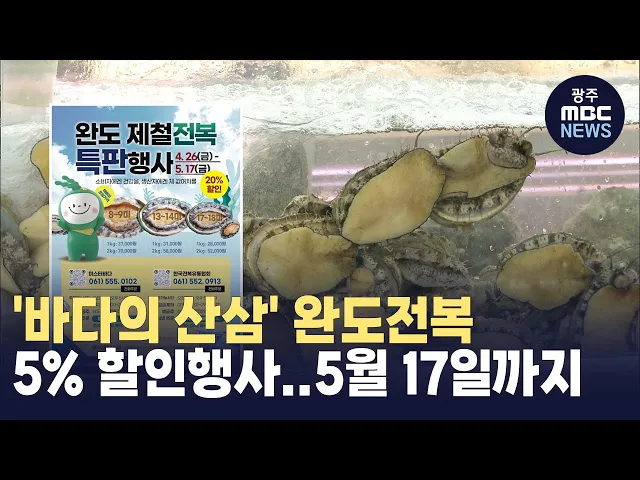 완도군은 봄철 전복 대량 출하 시기에 맞춰 내일(26일)부터 오는 5월 17일까지 완도특산물 인터넷 쇼핑몰인 '청정바다마켓'을 통해 5% 할인행사를 실시합니다.전복할인행사에는 완도지역 전복 생산자 협회가 모두 참여해 각 협회를 통해서도 할인 판매가 이뤄질 예정입니다. 완도군의 봄철 전복 할인행사는 매년 봄 전복 ...