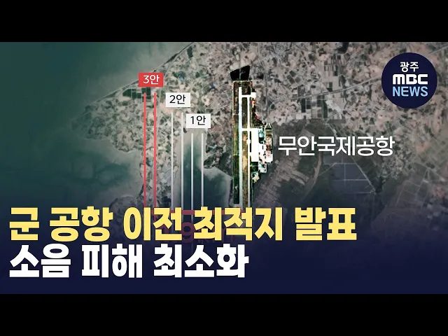 (앵커)광주 군공항 이전을 두고서둘러 진행하자 절대 안된다 이같은 입장이 팽팽히 맞서고 있는데요 군공항 이전을 위한 최적지가 오늘(24) 발표됐습니다. 무안국제공항에서 2킬로미터 가량 떨어져 있는 곳입니다. 김영창 기자입니다.(기자)무안국제공항에서 1.9킬로미터 가량 떨어진무안군 망운면 송현리와운남면 하묘리 ...