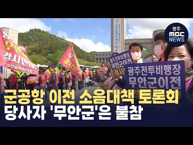 (앵커)앞서 보셨듯이 광주 군공항 이전 최적지로 무안국제공항 일대 해안가가 적절하다는 제안이 나왔는데요.광주시와 전라남도 등이 함께 마련한토론회에 무안군은 정작 불참했고,'공항을 받을 생각도 계획도 없다'며반대 입장을 고수하고 있습니다. 박종호 기잡니다. (기자)붉은 조끼를 입고 머리띠를 둘러 멘 무안군민 2...