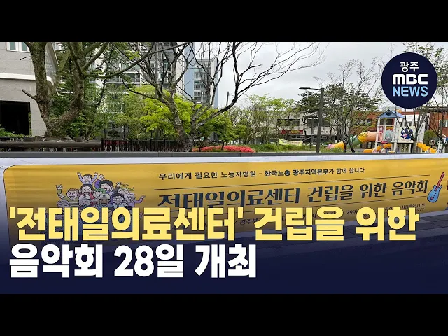 비정규직 등 의료취약 노동자들을 지원하기 위한 '전태일의료센터'의 건립 취지와 노동자 건강권의 중요성을 알리기 위한 음악회가 28일 오후 4시 광주북구문화센터에서 개최됩니다. 음악회에서는 당진에서 숨진 20대 노동자를 기리는 곡'그 쇳물 쓰지 마라' 등을 작곡한 가수 하림의 공연 등이 펼쳐지며 수익금 전액이 센...