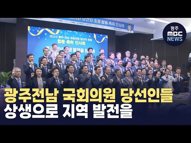 (앵커)고금리*고유가 기조가 이어지고서민 물가도 가파른 상승곡선을 그으면서지역경제의 위기감도 그만큼 커지고 있습니다.22대 총선 지역 국회의원 당선인들과지역 상공인들이 군 공항 이전 등산적한 지역 현안 해결과 상생발전을 위해적극 협력해 나가기로 했습니다.한신구 기자의 보도입니다.(기자)22대 총선 광주,전남...