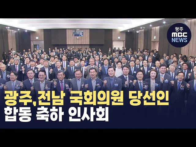 제 22대 국회의원 광주,전남 당선인들이 합동 축하 인사회를 갖고 지역 상생 발전을 위해 노력하기로 했습니다.광주 상공회의소가 마련한 인사회에는광주와 전남 18명의 총선 당선인들과 지역 정,관계 인사들이 참여해 지역 상생발전과 공약 실천을 다짐했습니다.이 자리에서 지역 상공회의소는 광주 군 공항 이전과 달빛철...