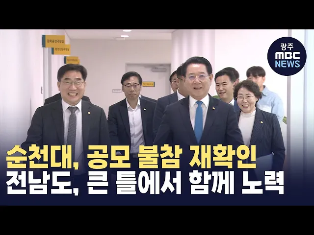 순천대학교가 전라남도가 추진하는 국립의대 공모에 거듭 불참 의사를 밝혔습니다.김영록 전남지사와 노관규 순천시장, 이병운 순천대 총장은 어제 전남도청 동부지역본부에서 면담을 진행했는데이자리에서 순천대는 전라남도의 의대 추천을 위한 공모는 법적 권한이 없다며 공모 불참이란 기존 입장을 유지했습니다.이에 ...
