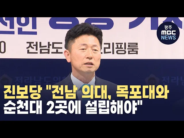 진보당 전남도당은 오늘 전남도의회에서 기자회견을 열고목포대와 순천대 2곳에 전남 의과대학 설립을 촉구했습니다.진보당 전남도당은 목포대와 순천대에 의대가 함께 설립되어야도민 요구가 실현되는 것이지 어느 한쪽만 된다면 반쪽은 여전히 도민의 과제로 남을 수 밖에 없다며 전남에 2개 의대가 설립되도록도민의 힘...