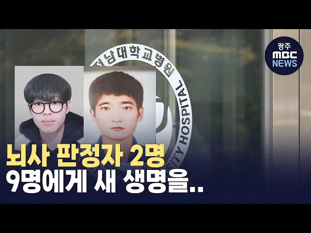 전남대병원에서 뇌사 판정을 받은 대학생과 40대 가장이 장기 기증을 통해 9명에게 새 생명을 선사했습니다.전남대병원 등에 따르면지난 19일 전통킥보드를 타다 넘어져 외상성 경막하 출혈로 뇌사 판정을 받은19살 강진식 씨는 가족의 동의를 받아환자 5명에게 심장과 간장 등을 기증했습니다.지난달 17일엔 뇌출혈로 뇌사...