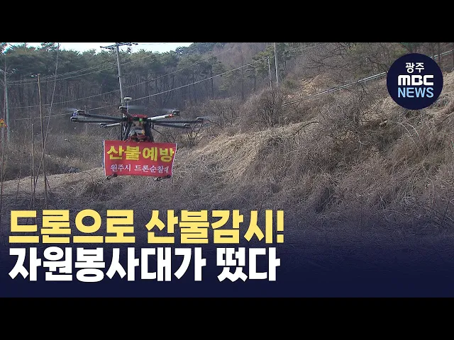 (앵커)산불이 많이 일어나는 요즘강원도에서는 자발적으로 모인 '드론 자원봉사대'가 산불예방 활동에 나서눈길을 끌고 있습니다.원주문화방송 유나은 기자가 보도합니다.(기자)산등성이 너머 마을쪽에서 하얀 연기가 피어오릅니다.비닐하우스와 밭 주변에 자리 잡은단독주택에서 불이 난겁니다.원주시 드론스포츠 협회단원...