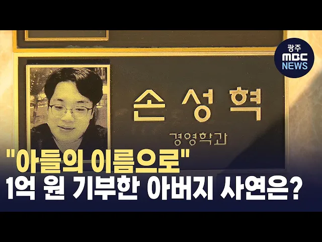 (앵커)한 대학생의 학부모가 국립대에 1억 원을 기부했습니다. 모범생이었던 외동 아들이 지난해 갑자기 숨지자 아들의 못다 이룬 꿈을 후배들이 이뤄줬으면 하는 바람에 기부를 한 건데요, MBC경남 이선영 기자가 보도합니다.(기자)손명동 씨가 국립창원대에서 명예졸업장과 발전기금 기탁증서를 받습니다. 환갑을 넘은 ...