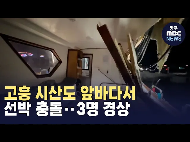 그제(6) 오후 6시 반쯤 고흥군 시산도 인근에서낚시 어선과 양식장 관리선이충돌하는 사고가 발생했습니다.이 사고로 어선에 탔던승선원 3명이 타박상 등을 입어병원으로 옮겨졌고, 선박이 파손됐습니다. 여수해경은 운항 부주의로사고가 난 것으로 보고,선장과 승선원을 상대로정확한 사고 경위를 파악하고 있습니다.#전남...
