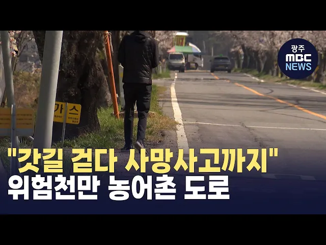(앵커)농어촌이 많은 전남 지역에서는매년 보행자 사망 사고의 피해자 절반이고령층이라고 하는데요.인도도 제대로 마련돼있지 않은도로가 많다보니 실제로 도로 옆 갓길을걷던 어르신이 차에 치여 숨지는 등사고도 잇따르고 있습니다. 서일영 기자가 취재했습니다. (기자)어두운 밤, 농로 옆 갓길을 걸어가는 한 70대 여성...