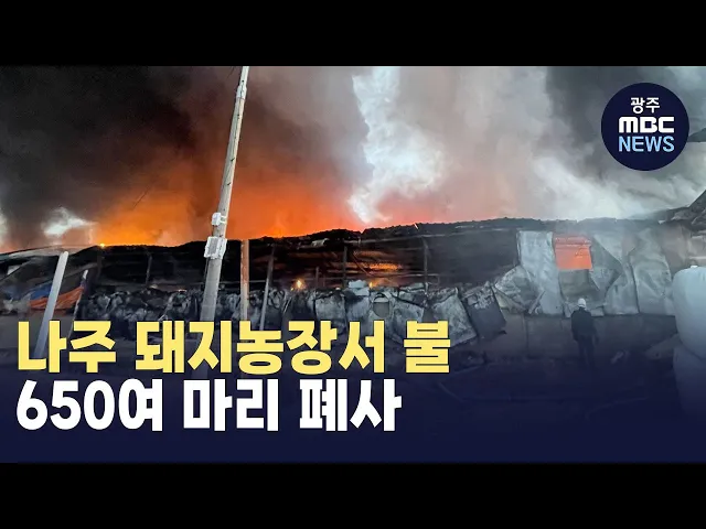 어제(5) 오후 6시 반쯤, 나주 봉황면의 한 돼지 농장에서 불이 나 4시간여 만에 꺼졌습니다. 이 불로 다친 사람은 없었지만, 축사 7개 동 중 3개 동이 모두 불에 탔고 돼지 6백 50여마리가 폐사했습니다. 소방당국은 농장 안의 전기시설에서불길이 시작된 것으로 보고 정확한 화재 원인을 조사하고 있습니다. #화재 #나주 #...