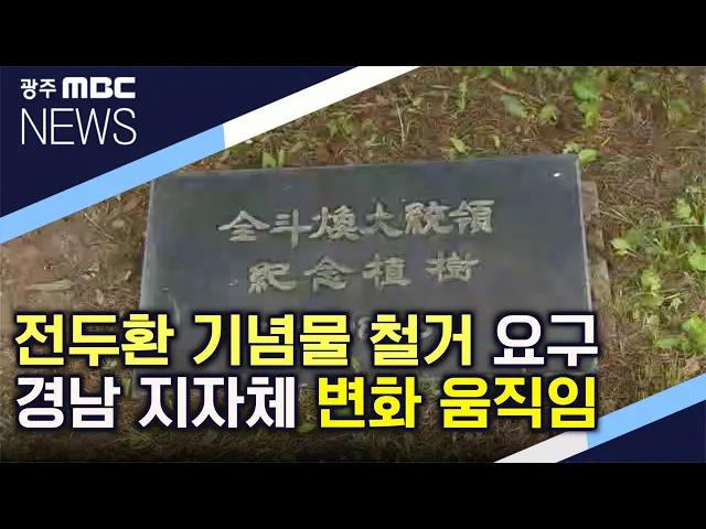 ◀ANC▶ 전두환 기념물을 청산하라는 시민사회단체의 요구에 경남지역 자치단체들이 조금씩 변화의 움직임을 보이고 있습니다. 창원시는 화합의 탑 안내판을 교체하기로 했고 합천군도 생가 안내문을 수정하기로 했습니다. MBC 경남의 신동식 기자! ◀END▶ ◀VCR▶ 창원시가 창원NC파크 마산구장에 세워진 화합의 탑에 ...