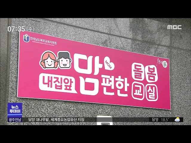 ◀ANC▶ 전국에서 처음으로 초등학교 돌봄교실이 아파트에 설치돼 좋은 반응을 얻고 있습니다. 경력단절 학부모가 돌봄교실 강사로 채용되는 등 일석일조의 효과를 거두고 있습니다. 김 윤 기자가 취재했습니다. ◀END▶ 새롭게 주거지역이 조성되고 있는 목포시내 한 아파트 단지입니다. 이 아파트 한 쪽 건물에는 지난 ...