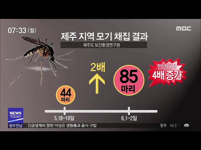 ◀ANC▶ 요즘 여름철 불청객인 모기가 벌써부터 기승을 부리고 있는데요. 최근 기온이 높고 다습한 날씨에 모기 개체수가 예년보다 빠르게 증가하고 있습니다. 제주MBC 이소현 기자입니다. ◀END▶ ◀VCR▶ 제주시내 한 상가 골목. 보건소 직원들이 하수구 뚜껑을 열고 살충제를 뿌립니다. 지난달 초부터 나타난 모기들...