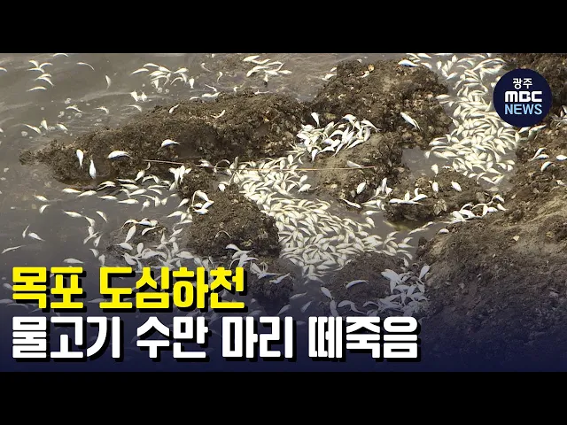 (앵커) 목포 도심 하천과 평화광장 앞바다에서 물고기 수만마리가 죽은 채 발견됐습니다. 목포시는 물고기 수거작업과 함께 긴급 원인조사에 착수했습니다. 박종호 기자가 취재했습니다. (기자) 목포 도심 하천에 작은 물고기들이 하얀 배를 드러내고 죽은 채 수면 위에 떠 있습니다. 뜰채를 동원해 건져도 건져도 끝이 없...