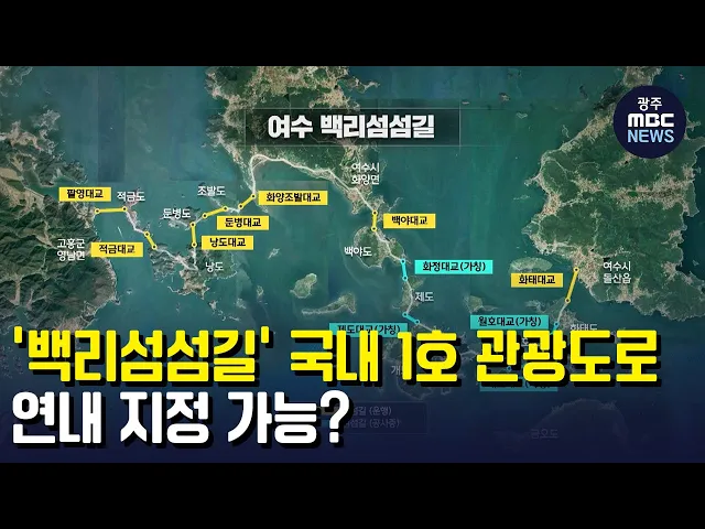 (앵커)여수에서 고흥으로 연결되는 백리섬섬길을 국내 첫 관광도로로 지정하기 위한 움직임이 활발합니다. 현재 국회에서 관광도로 지정의 근거가 될 도로법 개정안이 발의돼 있는데, 지역 내 조속한 지정 촉구 요구까지 잇따르면서 연내 지정 가능 전망도 조심스럽게 나오고 있습니다. 김주희 기자가 보도합니다. (기자)여...