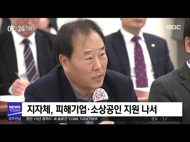 (앵커) 신종 코로나 바이러스 감염증 확산은 주춤 하고 있지만, 광주지역 중소기업과 소상공인들은 직간접적인 타격을 입고 있습니다. 지역 상공인들이 겪고 있는 어려움은 뭐고 어떤 대책들이 마련돼 있는지 살펴보겠습니다. 광주상공회의소 이후형 기획조사본부장 나와있습니다. 안녕하십니까? (앵커, 출연진 함께 인...