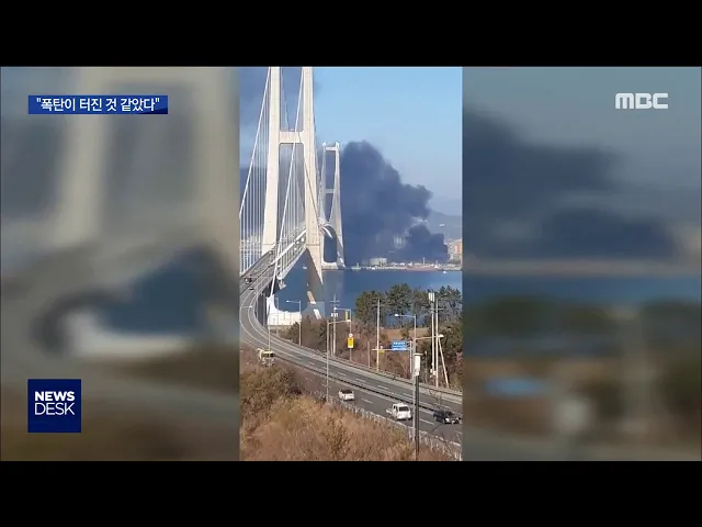 광양, 시커먼 연기 하늘 뒤덮어..인근 대교도 통제