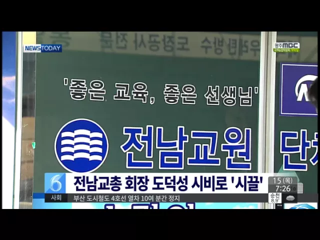 전남교원단체총연합회가 회장의 도덕성 문제가 불거져 시끄러운 모습을 보이고 있습니다. 전라남도교육청에 따르면 전남교총의 57살 김 모 회장이 교감으로 재직하던 2012년 다른 교사의 보고서를 베낀 표절작으로 교사교육연구대회에서 최고상인 1등급을 받은 것으로 드러났습니다. 김 회장의 부인 역시 지난 8월 열린 전...