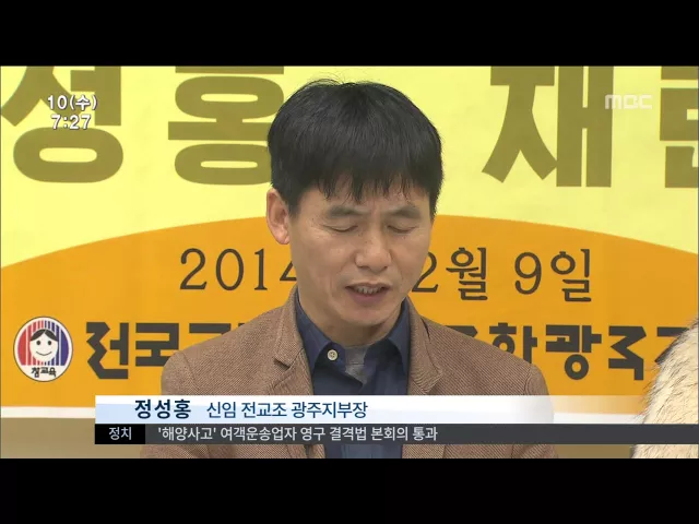 전교조 광주지부의 정성홍 신임 지부장은 기자회견을 열고, 진보 교육의 성공을 위해 시교육청과 협력할 부분은 협력하겠지만 교육청이 교육자치와 진보교육의 소명을 거스른다면 강한 저항에 직면하게 될 것이라고 말했습니다. 또 학생을 위한 참교육과 교권 강화에도 주력하겠다고 밝혔습니다. ◀인터뷰▶ (교사들의 제일 ...