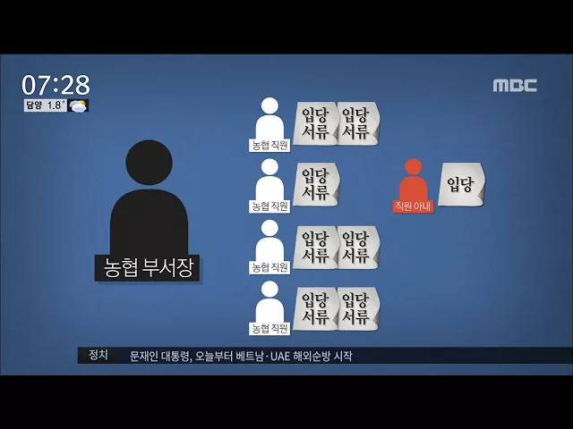 ◀ANC▶ 전남의 한 지역 농협에서 직원들에게 특정 정당 가입을 강제했다는 증언이 나와 파문이 일고 있습니다. 농협 측은 부인하고 있지만 부서별 할당량까지 정해져 있었고, 일부 직원들은 가족까지 정당가입 원서를 작성했습니다. 박영훈 기자입니다. ◀END▶ 전남 한 농협 직원의 온라인 뱅킹 내역입니다. C/G1]매달 ...