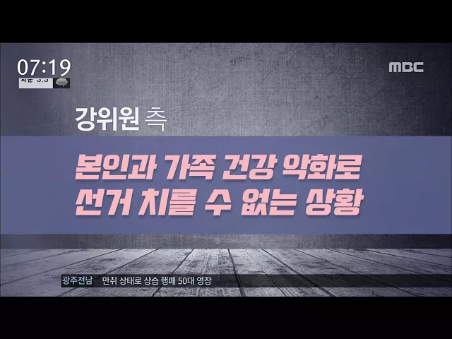 오늘의 주요뉴스.. '미투 운동'이 지역 정치권으로까지 확산되고 있습니다. 현직 군수가 성추행 의혹에 휩싸였고 구청장 출마를 준비하던 입지자는 출마를 포기했습니다. ------------------------------------------- 금호타이어 노조가 해외매각에 반대하며 고공 농성을 이어가고 있습니다. 노사정위원장까지 현장을 찾았...