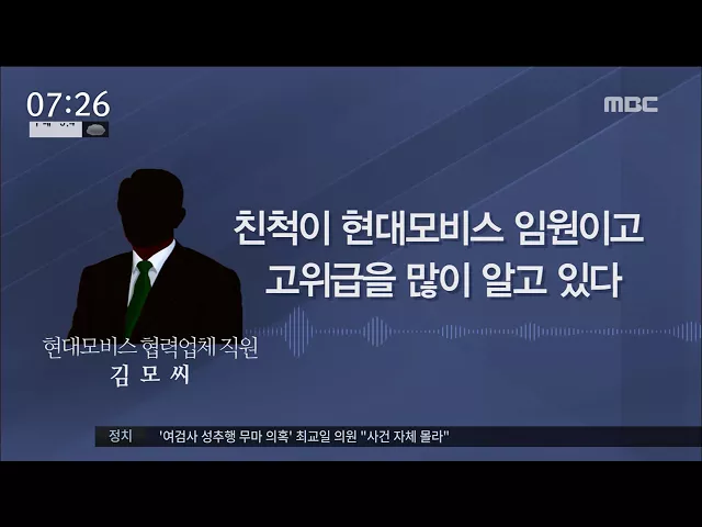 ◀ANC▶ 최악의 취업난에 속이 타는 청년들이 대기업 협력업체에 취직시켜준다는 말에 속아 사기를 당했습니다. 40여명이 피해를 입었는데요, 피해액은 10억이 넘을 것으로 보입니다. 김인정 기자가 단독 보도합니다. ◀VCR▶ 아르바이트로 생계를 잇는 34살 정 모 씨는 지난해 4천만원을 사기당했습니다. 현대모비스 협...