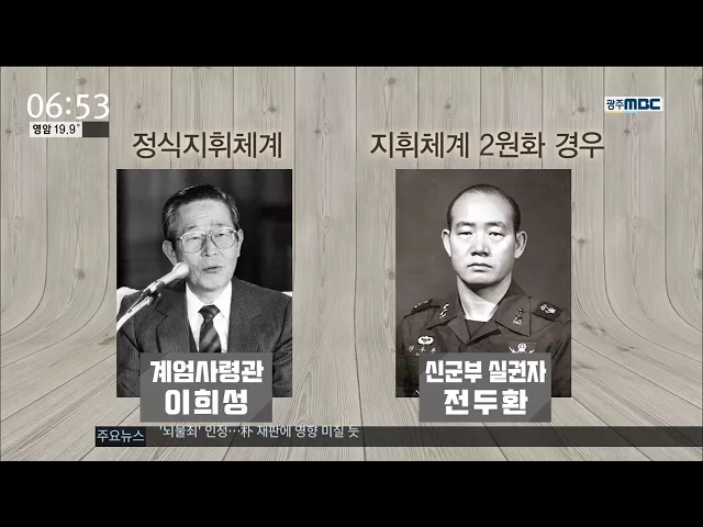 오늘의 주요뉴스... 5.18 당시 발포명령이 하달됐다는 군 기록이 37년만에 확인된 가운데 '발포 명령자'가 밝혀질 수 있을지, 관심이 높아지고 있습니다. ------------------------------------------- 국민의당의 새로운 대표가 이르면 내일(27일) 결정됩니다. 선거 결과에 따라 호남 정치에도 변화가 예상됩니다. -------...