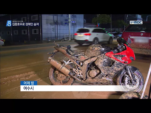 (앵커) 요즘 시도때도 없이 국지성 호우가 쏟아지고 있죠.. 순간적으로 불어난 물에 인명이나 침수피해가 잇따르고 있습니다. 급류에 휩쓸려 장애인이 숨지는가 하면, 토사 유출과 침수에다 교통 사고가 속출했습니다 박수인 기자입니다. (기자) 장대비가 내리는 가운데 전동휠체어를 탄 66살 문 모씨가 광주천변을 지나갑...
