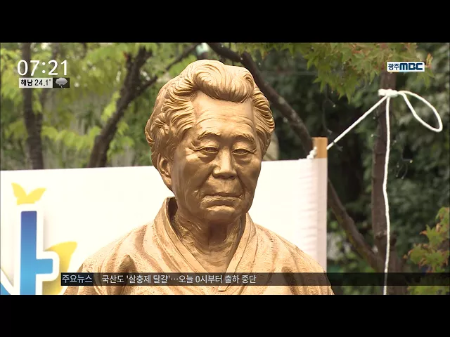오늘의 주요뉴스... 광주 5개 자치구에서 평화의 소녀상이 일제히 모습을 드러냈습니다. 시민 모금으로 세워진 소녀상은 희생자를 기리는 동시에 일제의 만행을 고발하고 있습니다. ============================================ 헬기 총탄 흔적이 무더기로 나온 전일빌딩이 5.18 사적지로 지정 고시됐습니다. ===========...