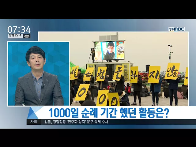 (앵커) 세월호 참사를 기억하고 진실 규명을 촉구하기 위해 시작된 세월호 시민상주모임 1000일 순례가 오늘 (11일) 마무리됩니다. 1000일 순례를 처음 제안했던 이민철 세월호 광주시민상주 님과 자세한 이야기 나눠보겠습니다. 안녕하십니까? ------------------------------------------- (질문 1) 우선 1000일 순례는 ...