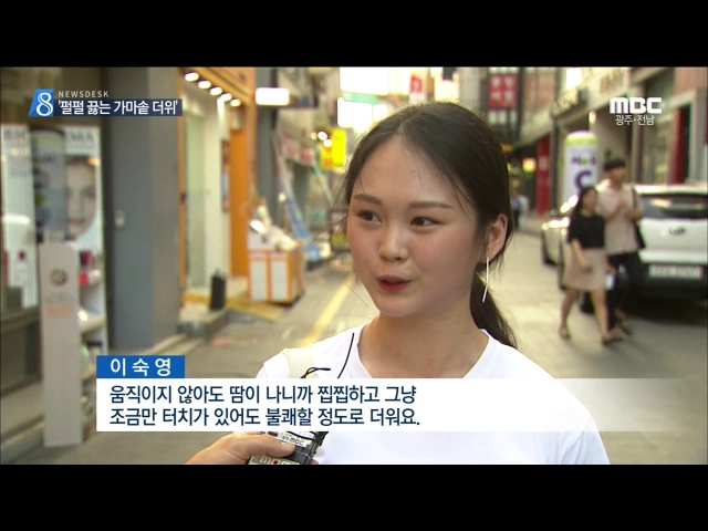 (앵커) 최근 광주,전남 대부분 지역이 37도를 넘는 찜통 더위가 기승을 부리고 있는데요. 그야말로 펄펄 끓는 가마솥 더위속에 온열질환 환자도 속출하고 있습니다. 건강 관리.. 각별히 주의하셔야 겠습니다. 첫 소식 송정근 기잡니다. (기자) 찌는 듯한 무더위가 기승을 부리는 오후. 양산으로 .. 책으로 ... 휴대용 선풍...